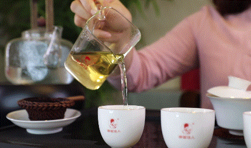 将茶汤从公道杯中分入品茗杯中,即可品饮。
