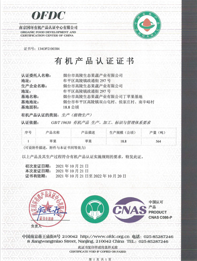 嘴上说的不算,丁苹果种植基地有机源头可追溯!各种证书硬核证明实力。