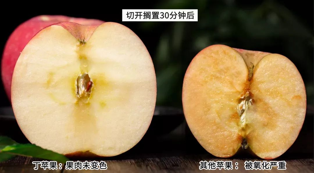 首先是更高含量的抗氧化剂。我们专门测了一下丁苹果,抗氧化性特别强,切开后搁置很久也不怎么变色。