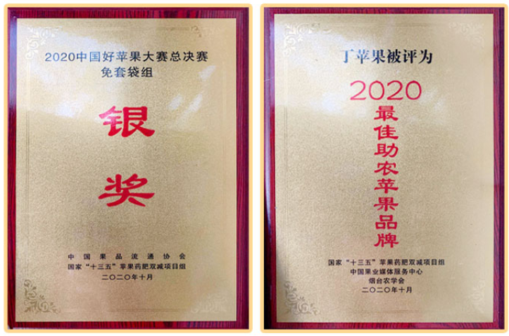 就在前不久,在由中国果品流通协会和国家“十三五”苹果药肥双减项目组主办的2020中国好苹果大赛总决赛中,丁苹果获得了银奖(金奖只有一个),所以丁苹果是中国第二好的有机苹果啦!
