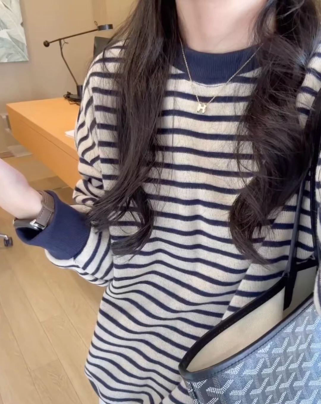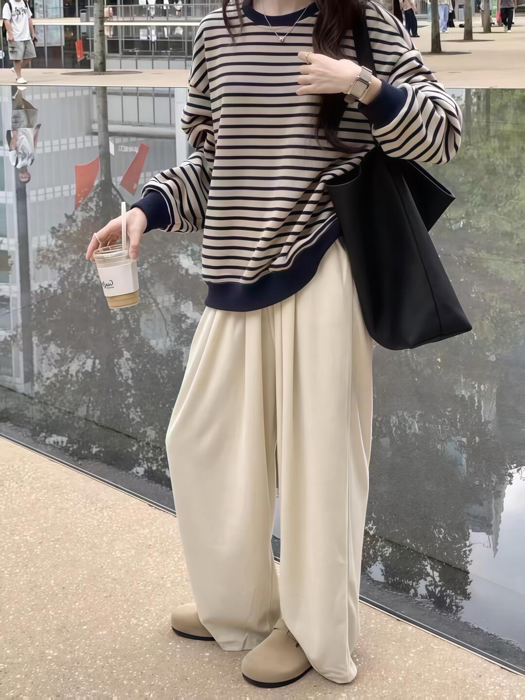 ✅ 藏青条纹:高级耐脏!搭卡其风衣是通勤 OL风
