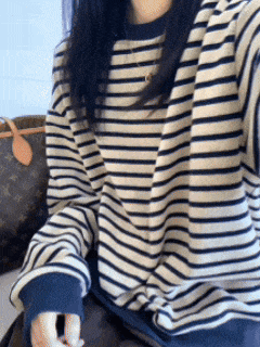 韩系条纹卫衣 显白显瘦天花板