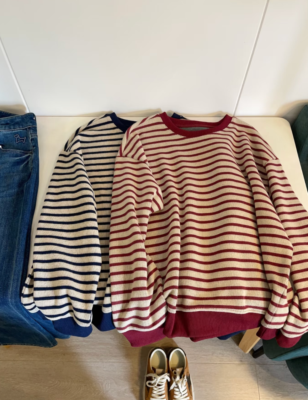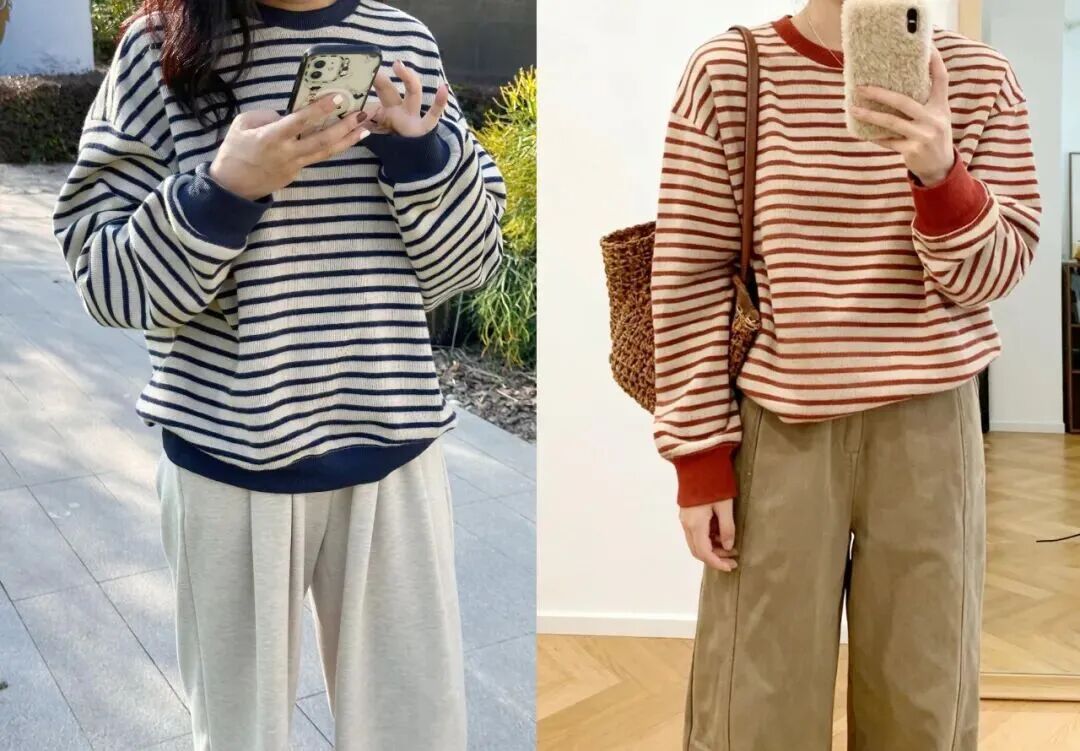 3️⃣ 单穿叠穿都OK,红白 / 藏青条纹巨百搭