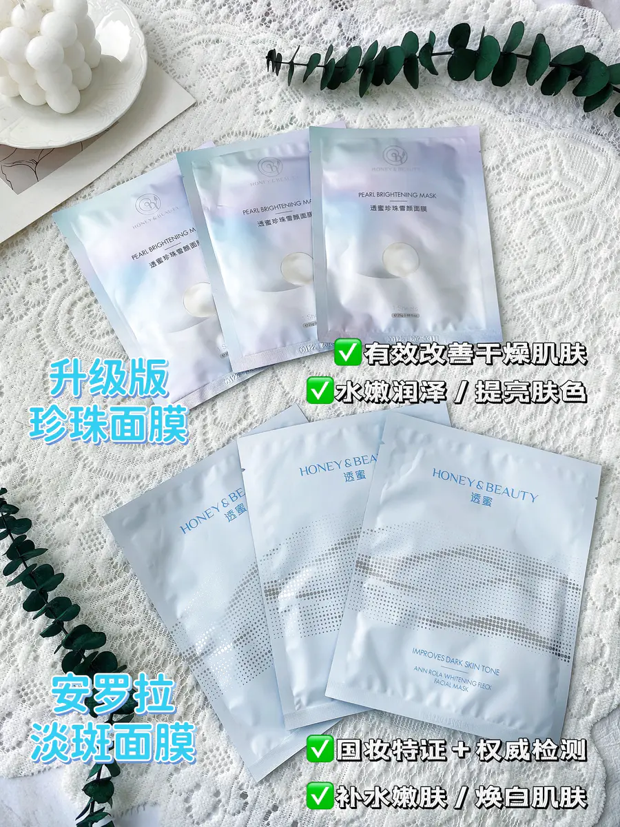假期的时候珍珠面膜+安罗拉淡斑面膜搭配着敷
