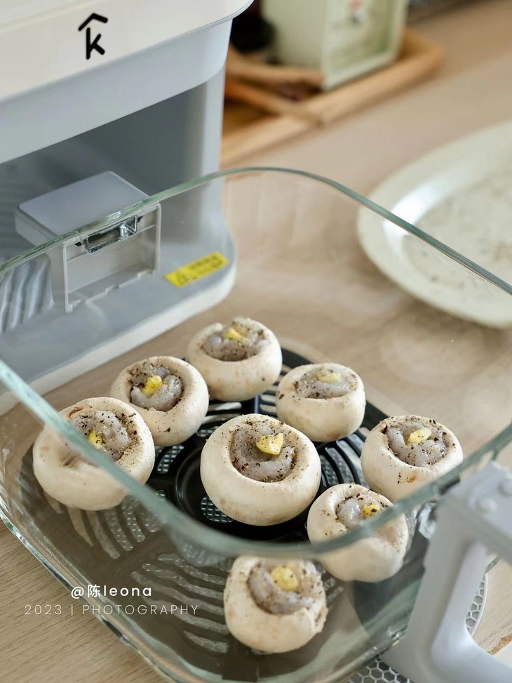 3、将口蘑放入空气炸锅中,撒上些许黑胡椒