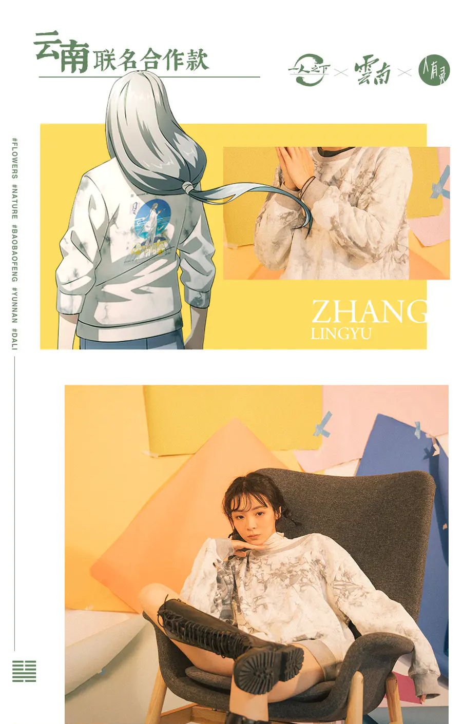 “人有灵”联合云南大理当地老字号“妈妈制造”合作社,将传统扎染手工艺运用在“人有灵”·云南版的设计当中, 以年轻人的时尚来诠释传统技艺,用动漫的方式演绎云南特色元素与当地文化。此次合作的“风花雪月城”云南版主题潮服,不只是将动漫元素与潮流品牌结合,而是一次打破动漫、潮流与传统文化壁垒的跨界融合。这件扎染卫衣穿在身上,感觉本人都透着一股文化的味道了!
