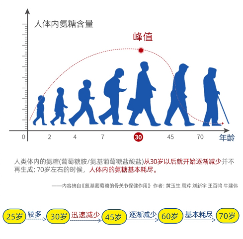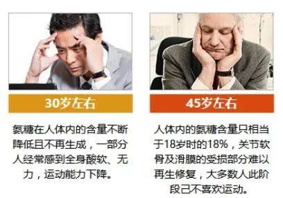 而钙和氨糖的含量会随着年龄的增长逐渐流失