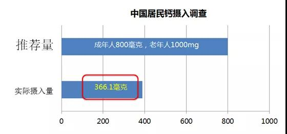 我国城乡居民每标准人日钙摄入量仅为366.1mg