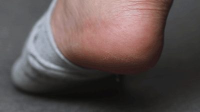 大块大块的死皮,严重点儿还开裂流血,不光碰水、吹风会疼,走路更是钻心的疼。