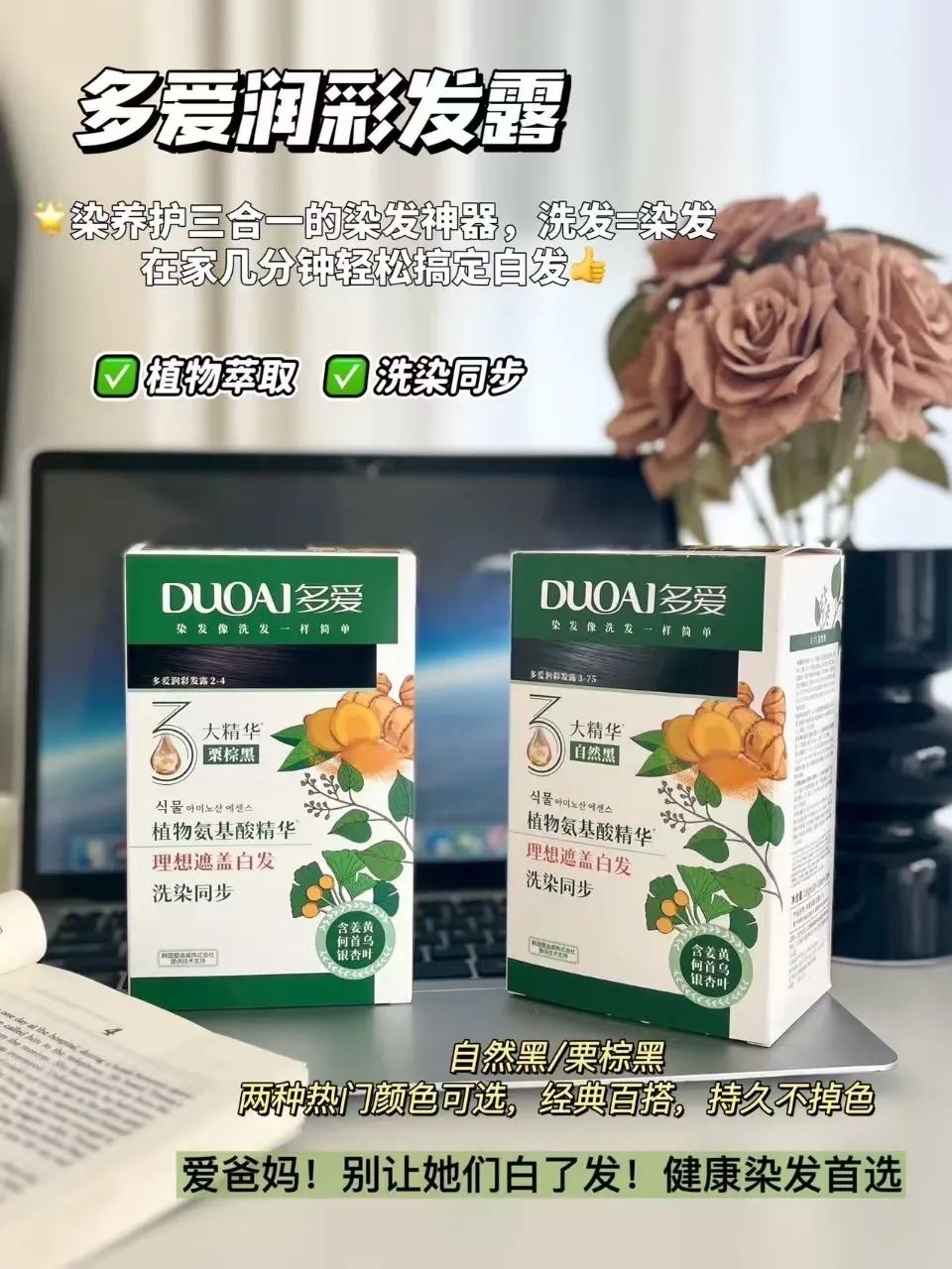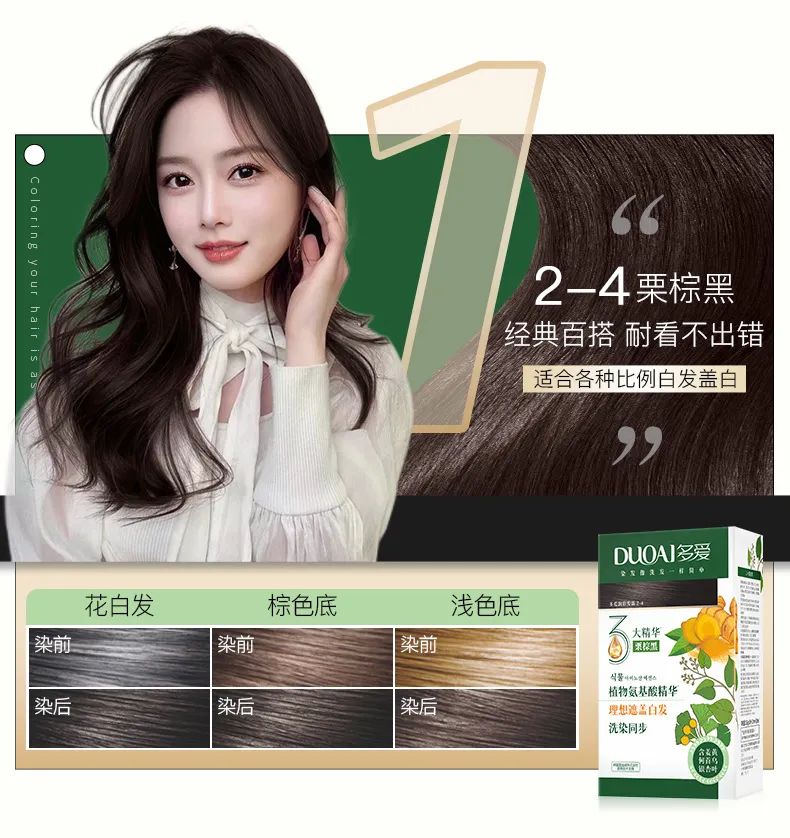 为了放心“变美”,我找了十几种染发剂,终于找到一款安全、遮白发、傻瓜式操作的宝藏——多爱银杏叶植物提取物染发剂,洗个头的功夫,白发就被藏起来啦~