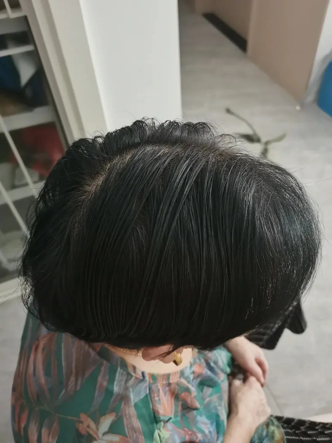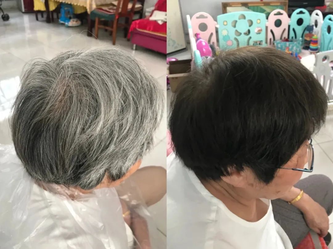 奶奶的头发是在理发店染的,白发没怎么盖住还褪色成了棕红色。用多爱洗完之后,可以看到原本很显眼的白发已经不见踪迹!被染坏的黑发也终于回归本色!完美融入到了新发色里。