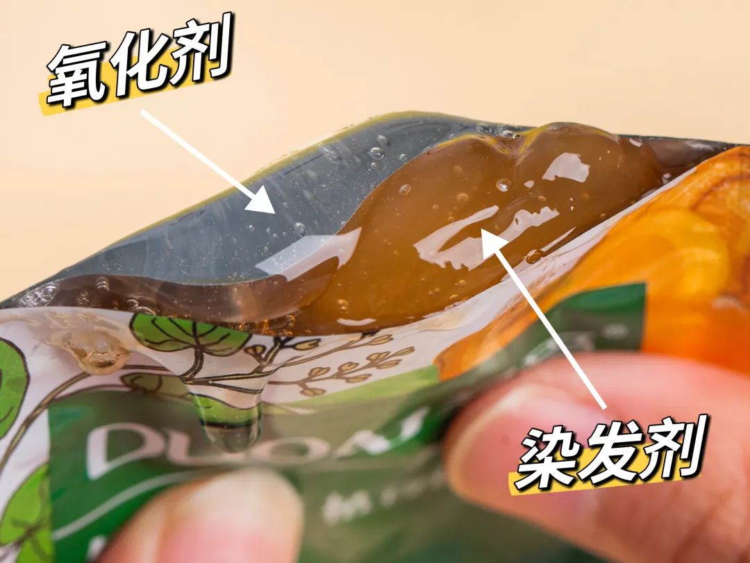 为了方便操作,直接将氧化剂和染发剂设计在了同一个袋子里!袋里做了隔层,一面是染发剂一面是氧化剂,不用再费心调配~