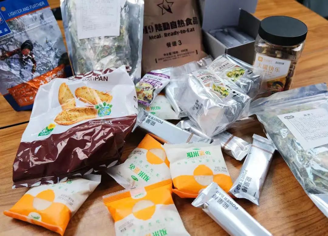 水带1-1.5L。补给可选择面包,巧克力、葡萄干、沙琪玛、鸭脖等小巧易携带,随身携带垃圾袋,产生的垃圾都需带出野外。