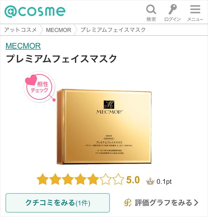 名膜壹号这款抗皱面膜,老早就火遍了日本,最权威的网站@cosme,给它打5颗星(要知道本土大牌也才4.5星)