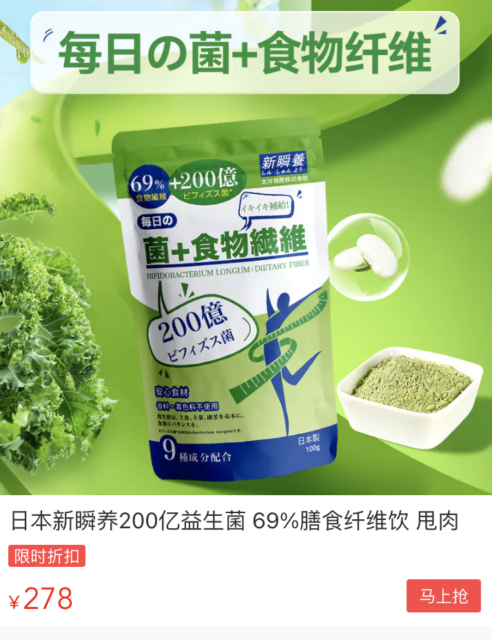 考虑到每个人微生物环境不一样,更 好的方式是坚持吃,大包装一起买会更优惠。这不,活动力度咱们也谈下来了,1袋100克(20天量),今天粉丝优惠:1袋99元;2袋168元;4袋278元,低到69.5元/袋!相比日常价打了7折,平均每天3块多!