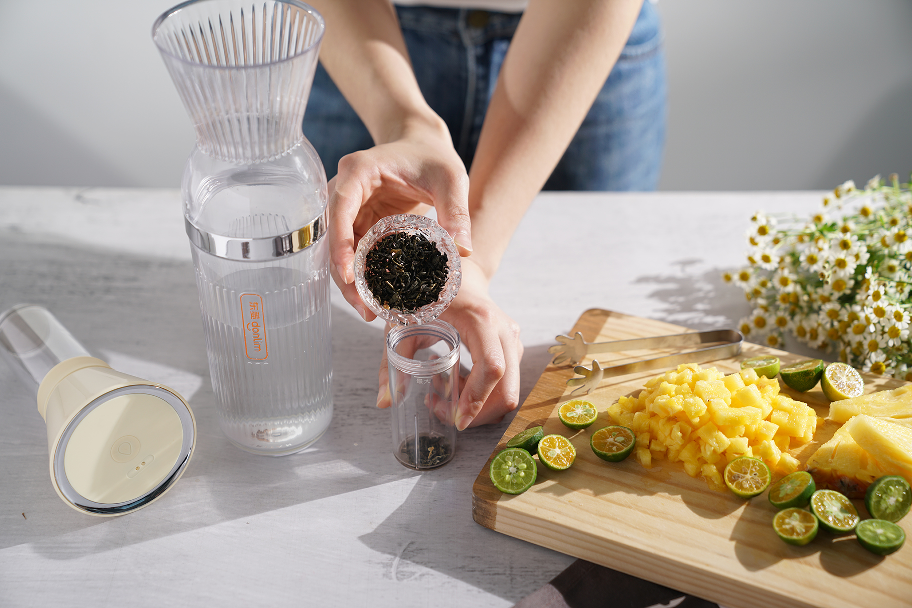 2. 杯中加入300ml纯净水,料仓中加入茉莉花茶;
