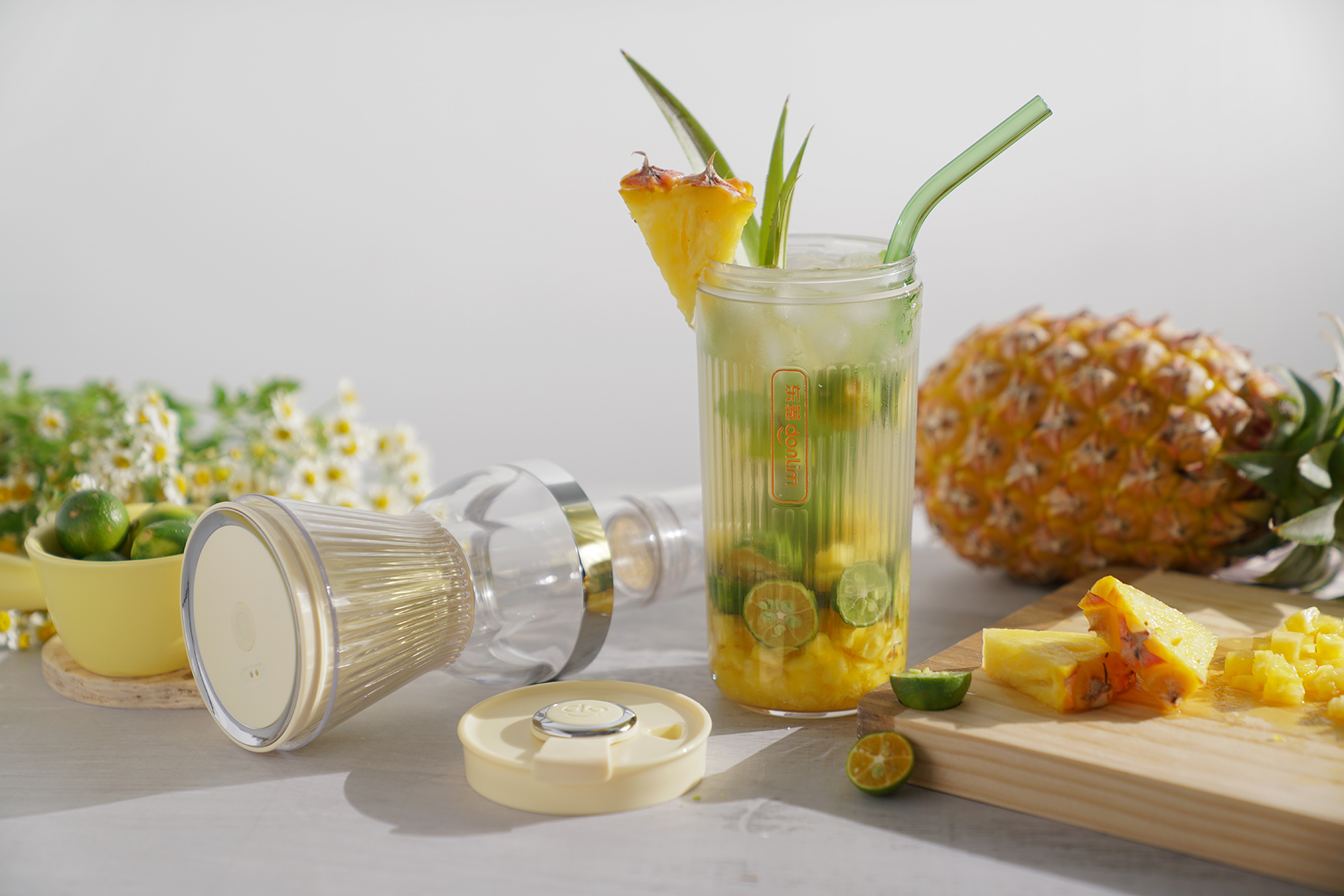 3.杯中加入凤梨粒和蜂蜜,并略微按压出汁