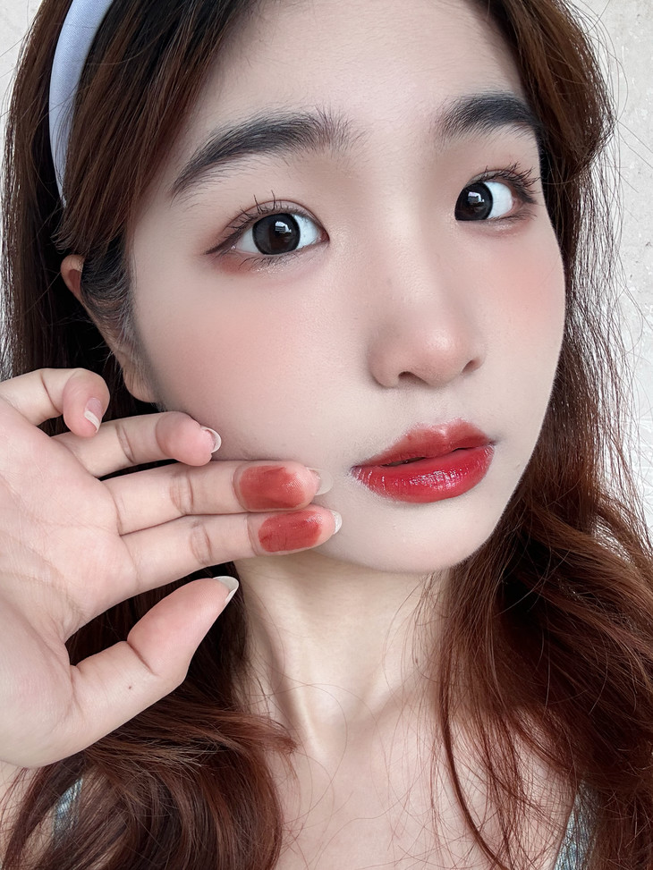 人鱼镜面唇釉111樱桃茶冻简直太美了!不挑肤色,谁涂谁好看,显得整个人也非常甜,上嘴的冰透感真的绝了,显得嘴巴嘟嘟的。