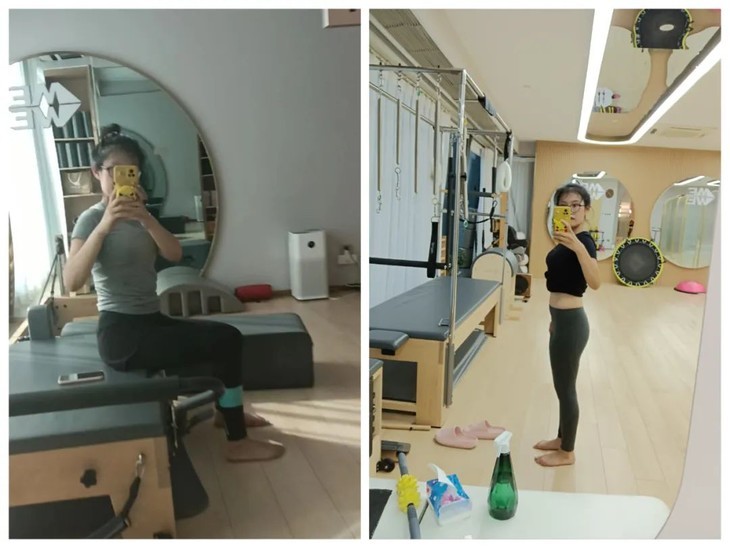 @45岁莱茵 生完孩子后,肚子疯狂膨胀,从此无缘牛仔裤、紧身裙,还被老公嫌弃她太胖。 后来跟着王媛老师针对骨盆进行训练,效果比以前吃减肥药、节食要好得多。 不到1个月全身小了一大圈,腰线慢慢显露出来,大腿根的赘肉减少,腿也变细变长。