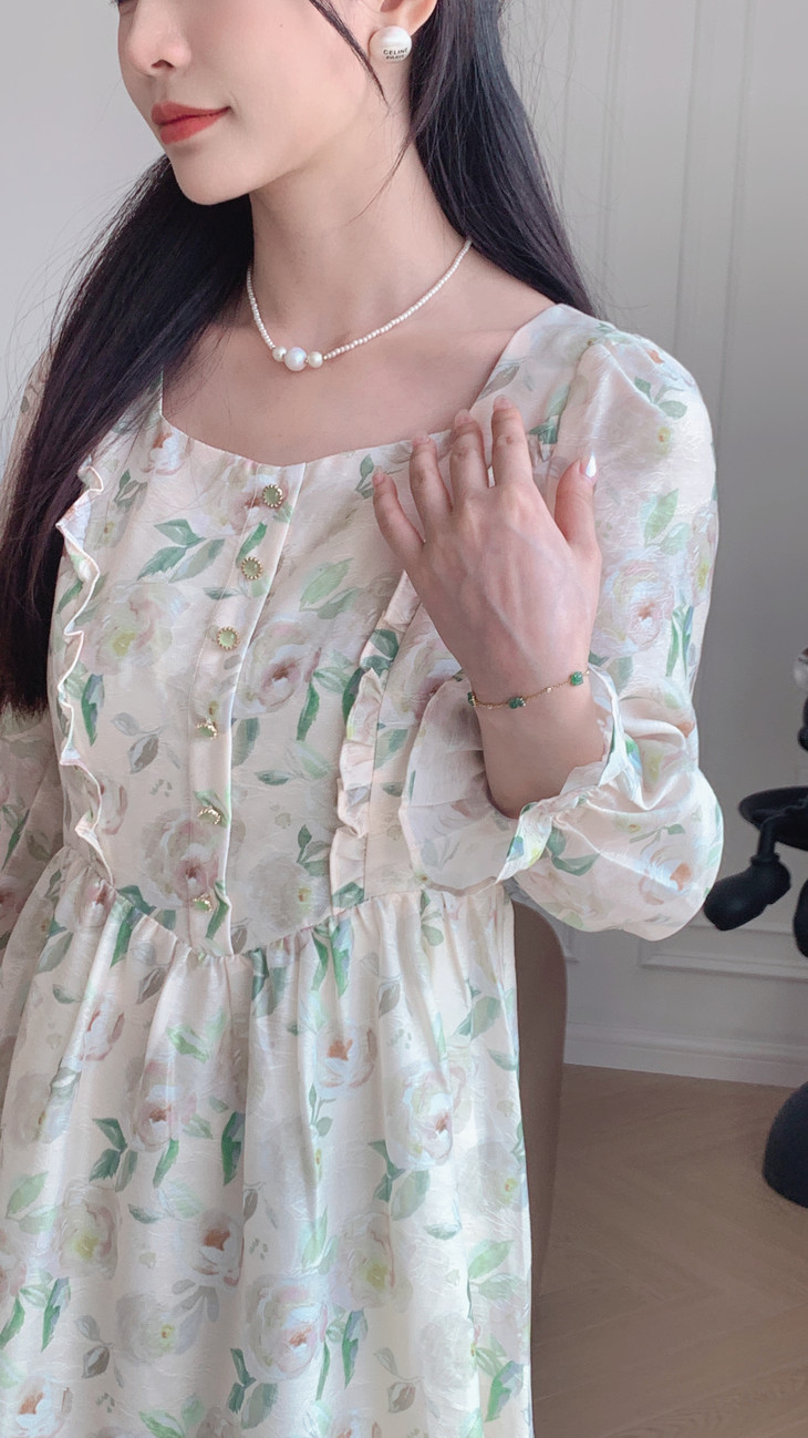 淡雅清新!法式浪漫方领碎花连衣裙