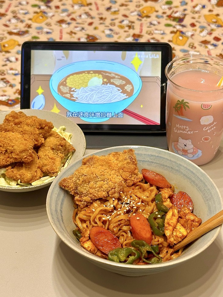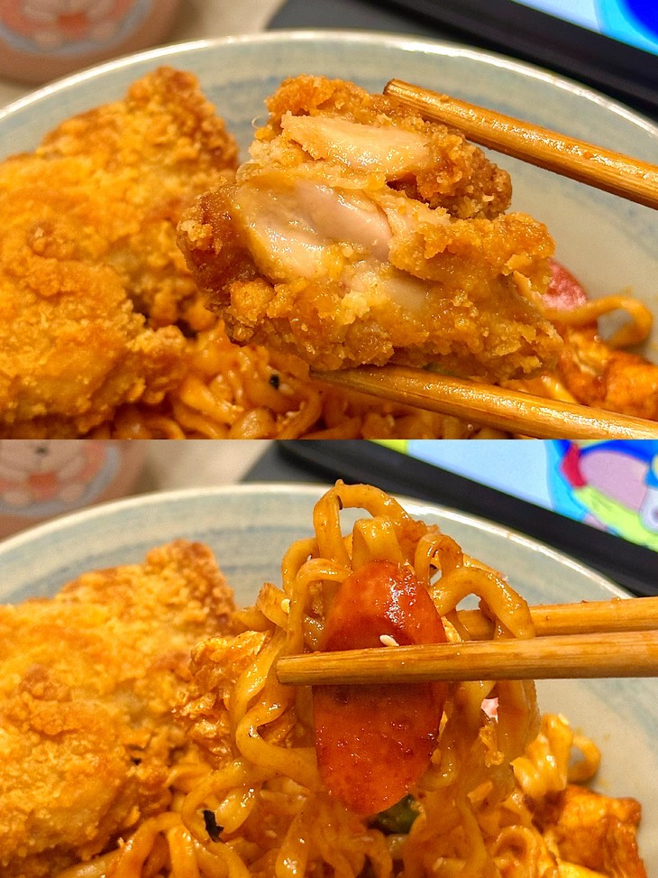 复工懒人摆烂指南📝甜辣火鸡面+香脆炸鸡,双倍快乐!