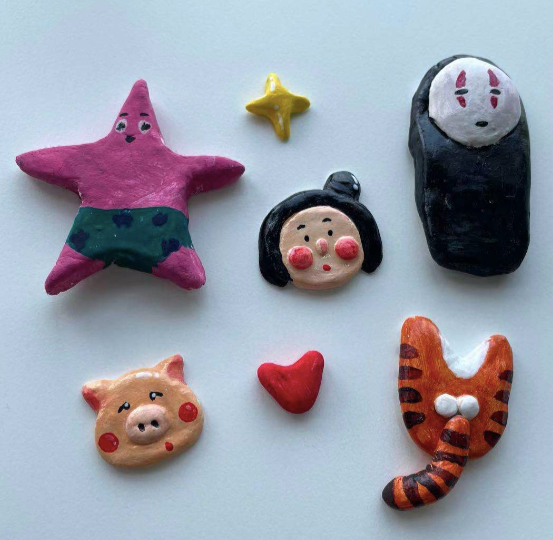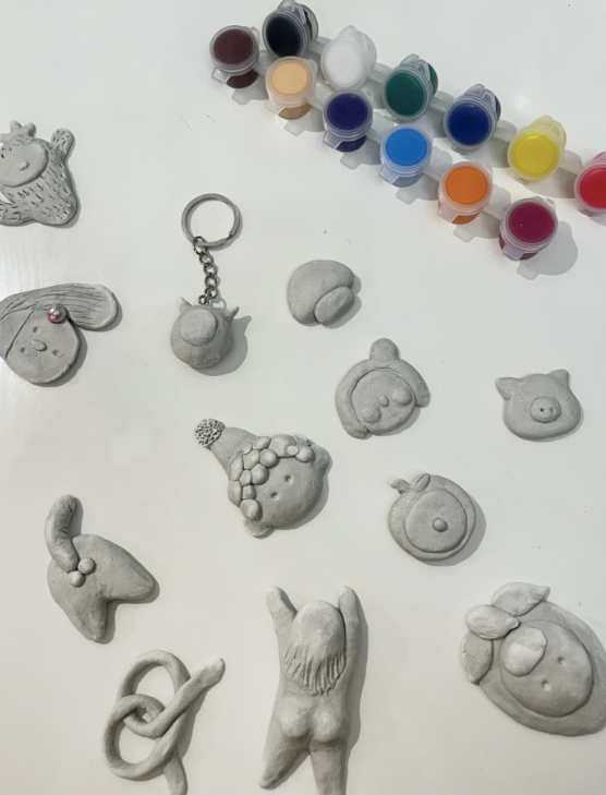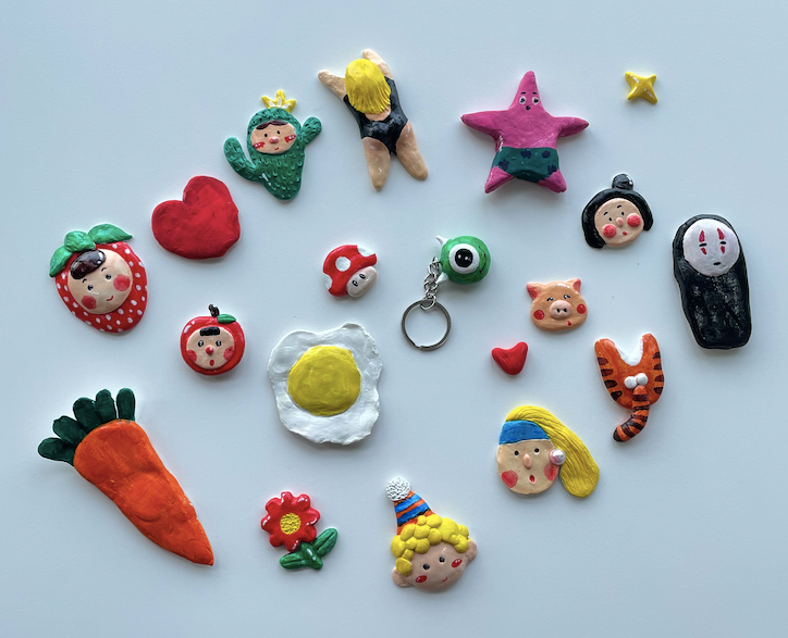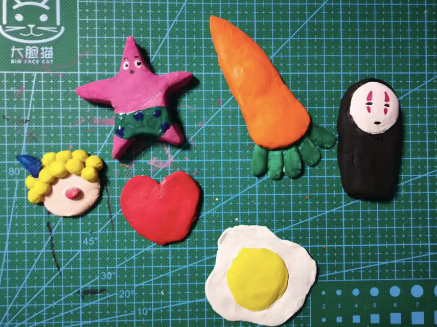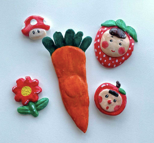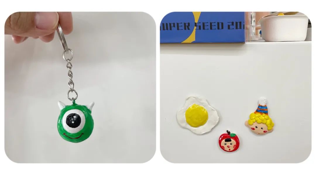 可以发挥自己的想象力,用陶泥做出许多东西,比如冰箱贴、钥匙扣(磁铁和钥匙环在套装中都会提供):