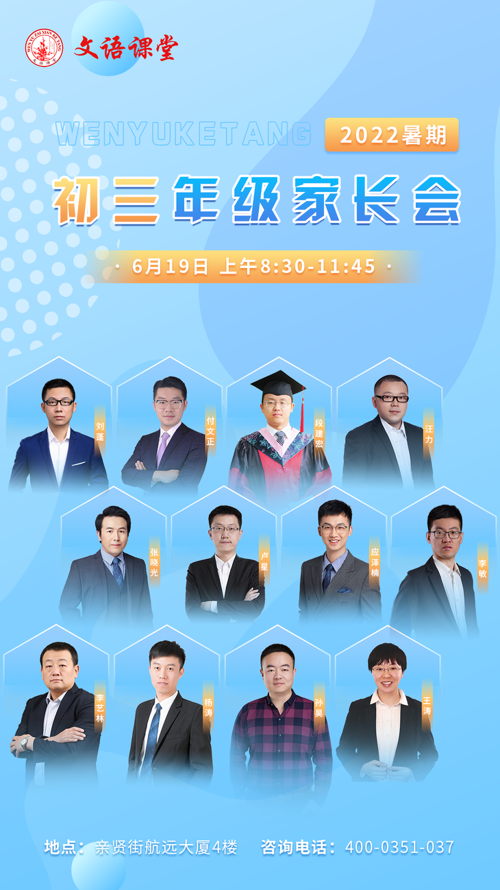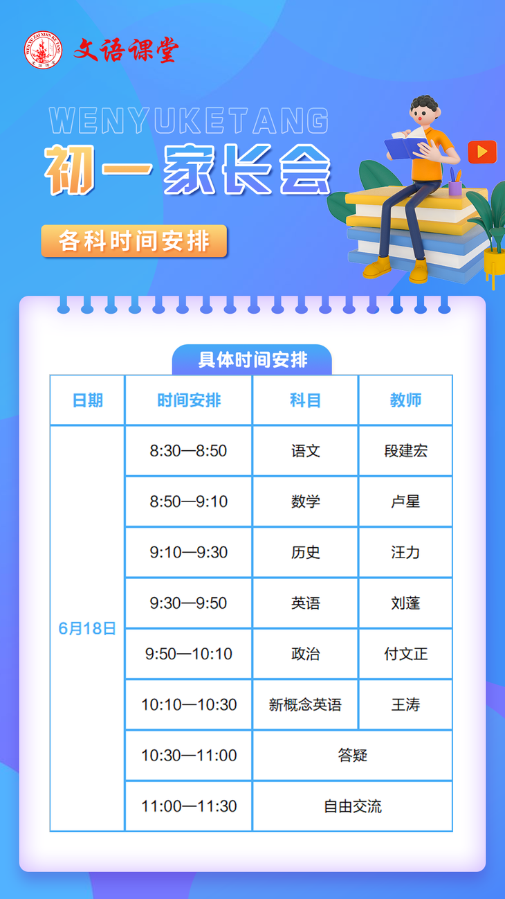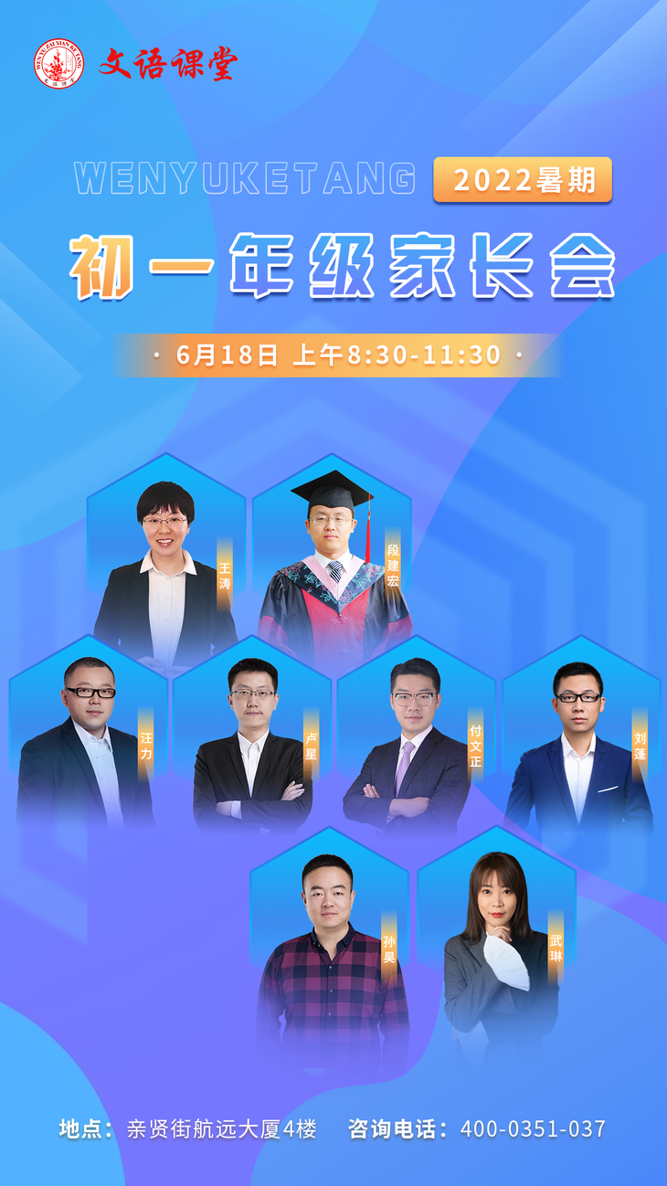 为了让孩子们和家长们更好地了解新年级的学业规划,更好地规划好暑假时间,文语课堂特别邀请各科老师召开初中各年级暑期家长会。