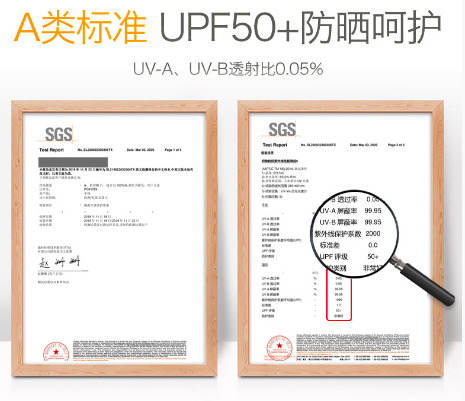 UPF值越高,说明紫外线的防护效果越好。国家标准中纺织品的UPF值最高的标识是50+,也就是UPF>50。而FJK防晒帽具备了UPF50+超高防晒系数,给孩子最安心的防晒保护。
