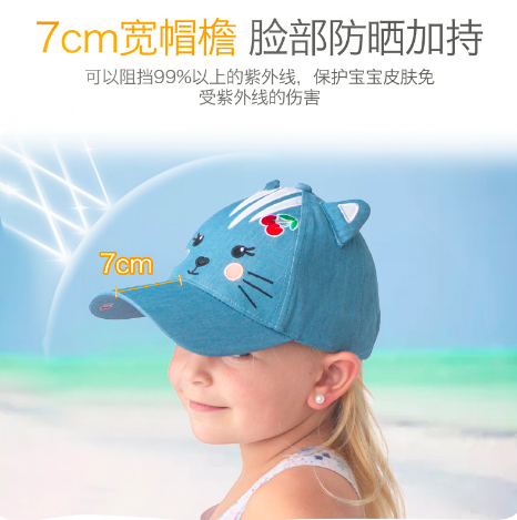 帽檐要7cm左右,这个宽度也是美国儿科协会建议并经过专业测试的,防晒的同时,也不会遮挡孩子的视线哟,专业又贴心!