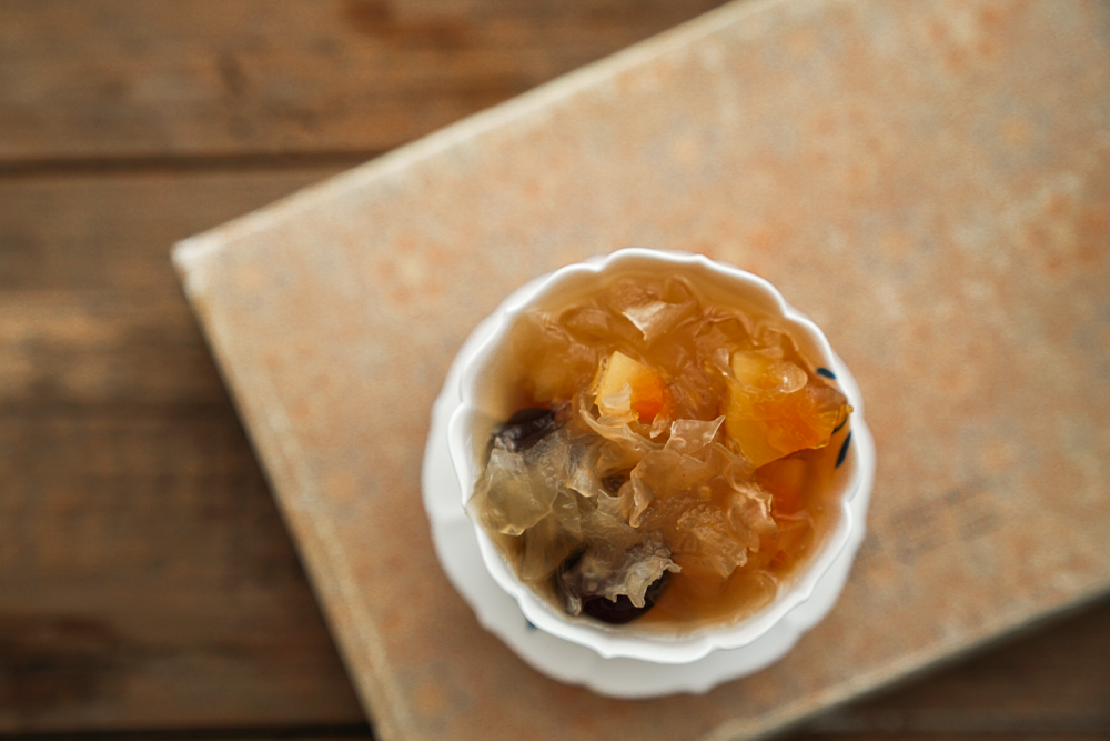 最常见的银耳食用方法,是做汤羹,里面可以根据喜好,加莲子、雪梨、红枣、木瓜等各种食材,养阴清热,润肺止咳。