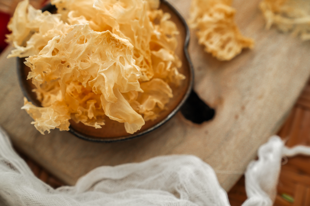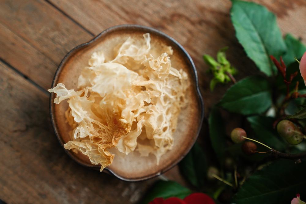 “苍花千朵亲摘处,认取玉肌笼雪。浓浇米泔,化秋气、露盘清洁。”是文人赵熙写给银耳的诗。