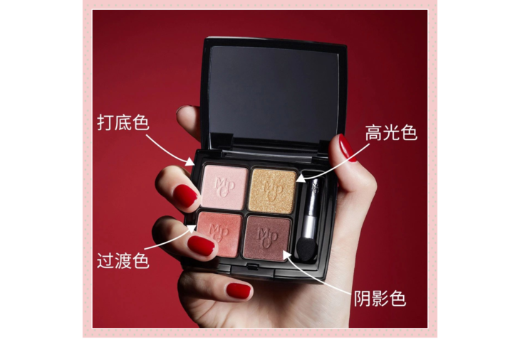 其实呢,一盘眼影的主要配置就高光色、打底色、过渡色和阴影色这四种。
