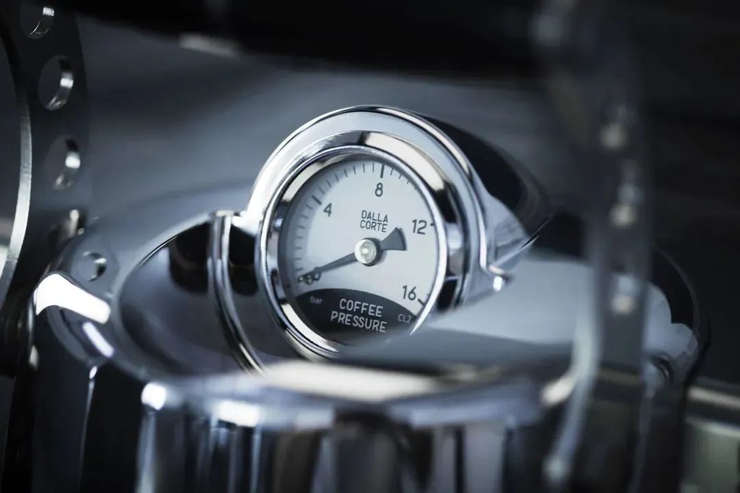 同时冲泡及预浸泡的压力状态在冲煮头上部的压力表上可直观显示。因为Mina预设了探针装置在煮头内部,实时显示了滤杯把手内的实际压力。通过DFR技术完美实现萃取前的预浸泡!