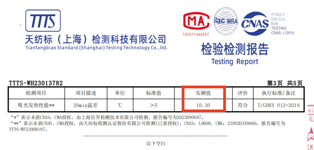中暖和高暖20min内升温的实测值分别达到了10.3°C和7.6°C,可以说穿上不怕冷了。