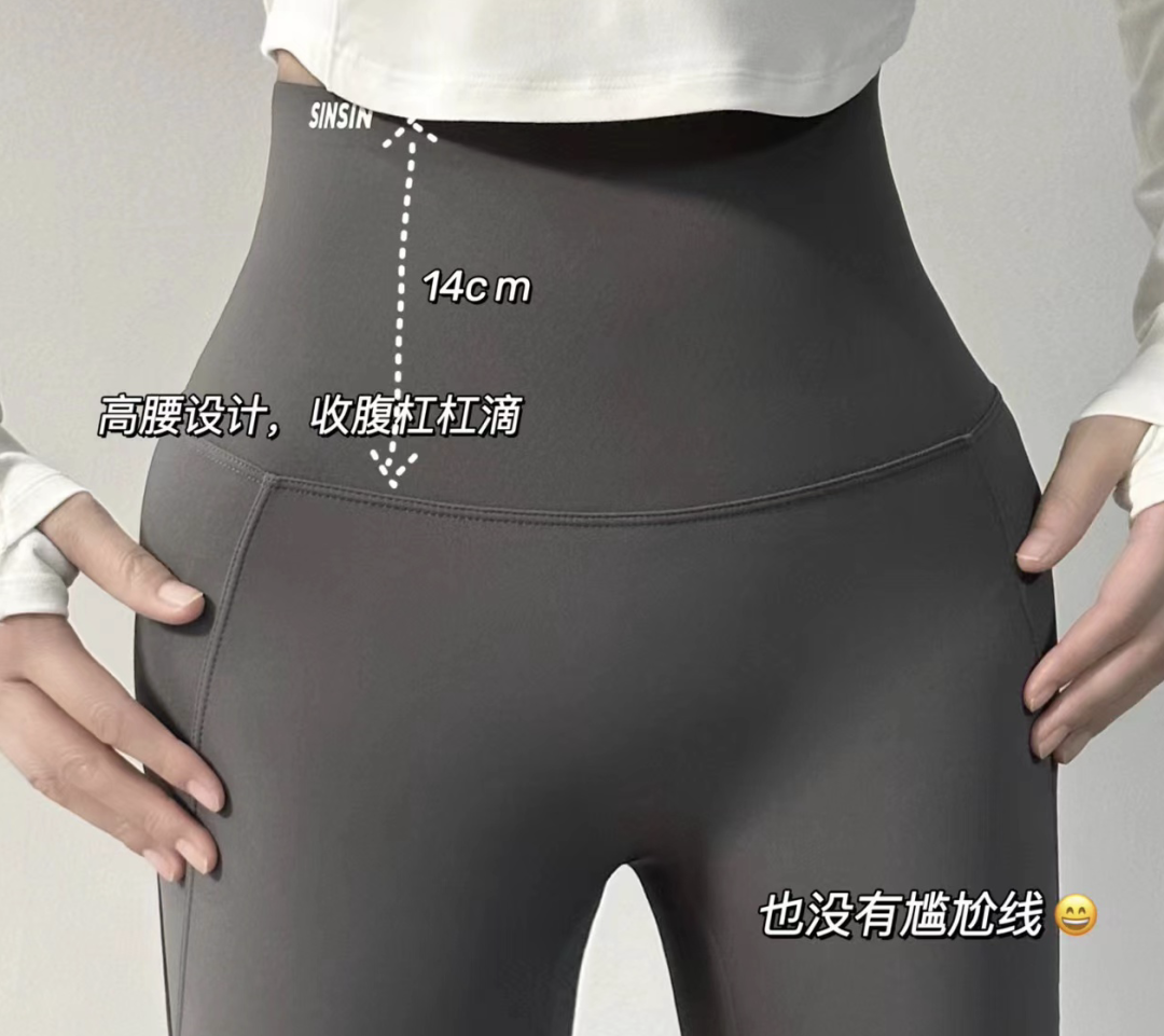 SINSIN鲨鱼裤有14cm超高腰的一整片果冻胶腰头,是更软更弹的「收腹小熨斗」。