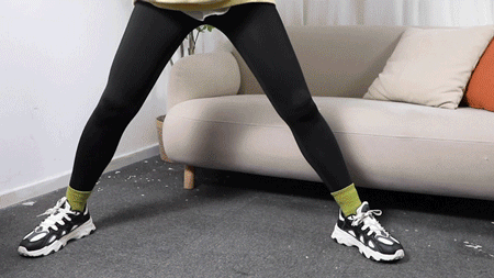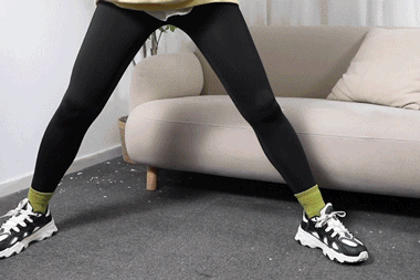 再来个下压腿看看裆部卡不卡?掉不掉?不掉档,不卡档,穿着舒服。