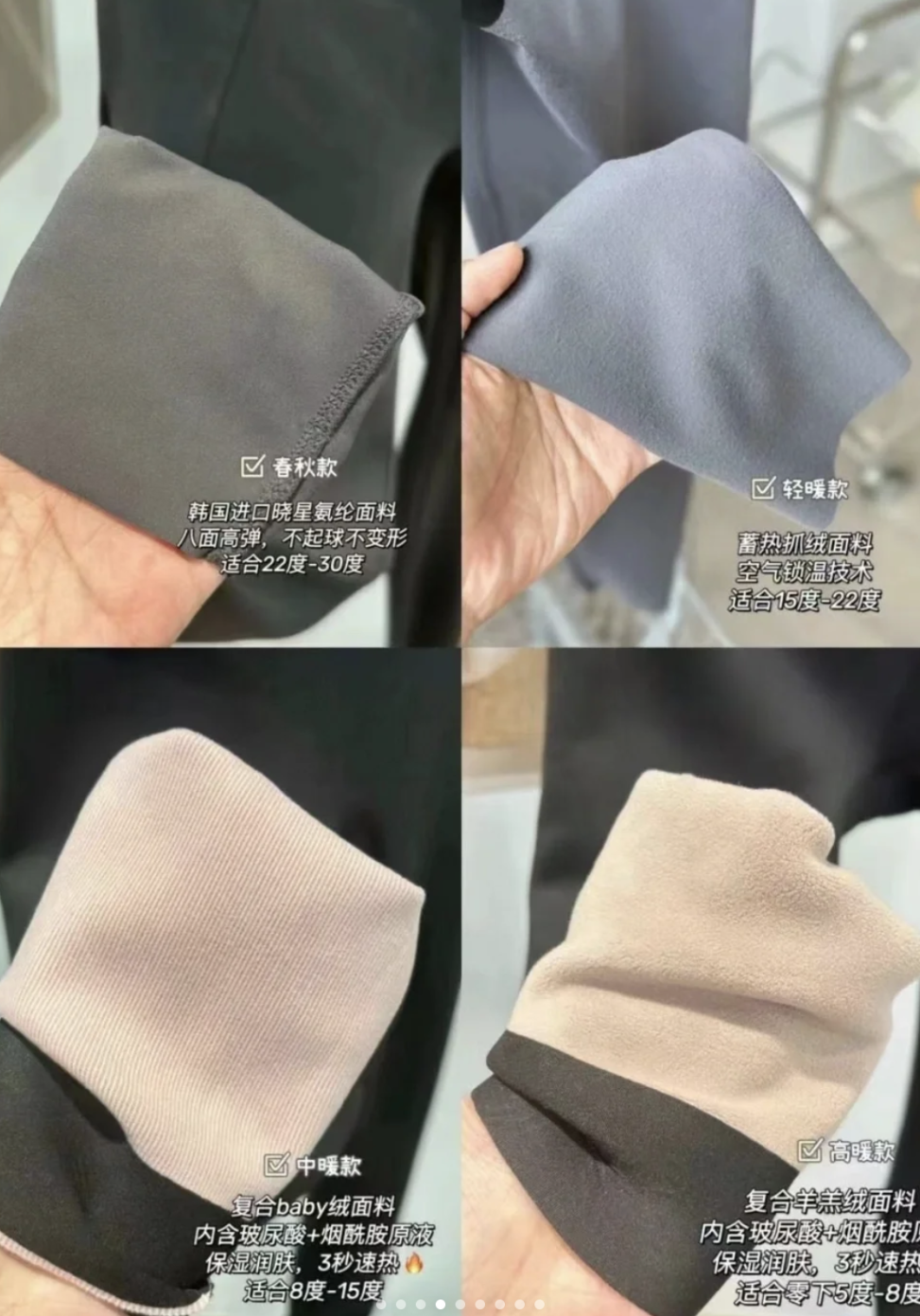 春秋、轻/中/高暖四种厚度
