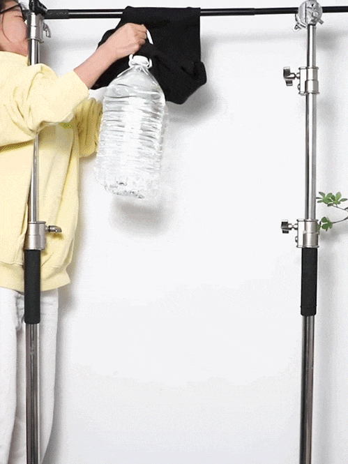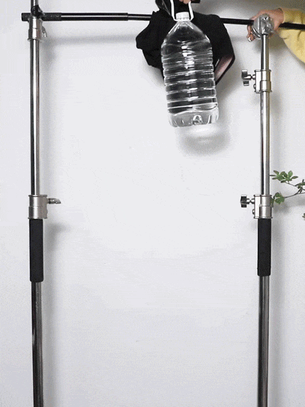 让视觉更刺激,裤腿绑上1桶5L和2桶5L的水,杆子都坠变形了SINSIN鲨鱼裤还是没异常。