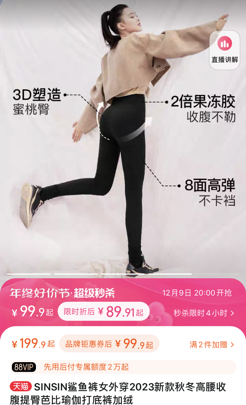 1、SINSIN鲨鱼裤赛道的口碑王!全网累计销售630w条!明星孙怡、曾黎...各大博主都说SINSIN的鲨鱼裤好穿。