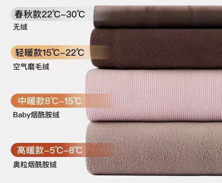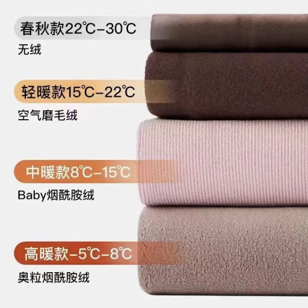 轻暖款(空气磨毛绒):15-22°C