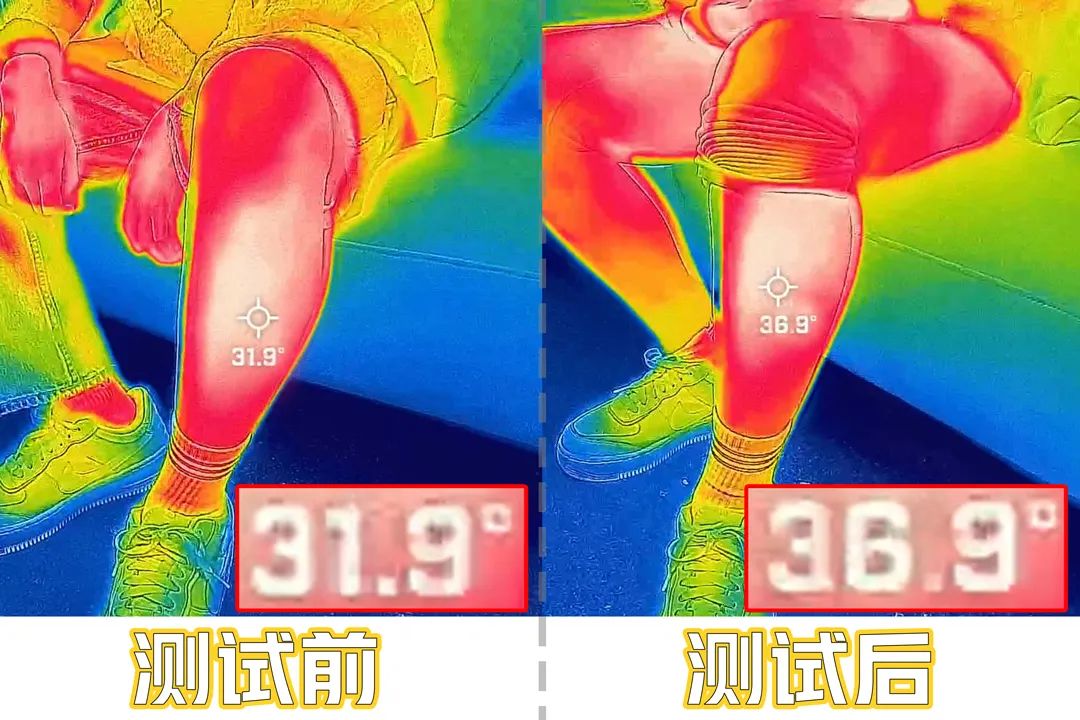 我光腿的温度是31.9°C,穿了十分钟后,温度上升到了5°C,直接干到36.9°C。保暖效果真的牛。