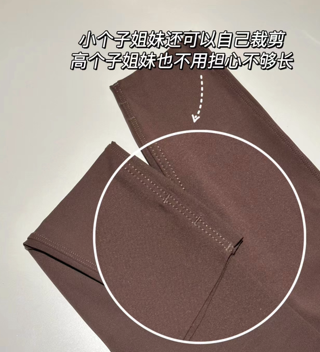为了避免针脚磨腿的问题,用了窄双针压线,穿起来亲肤不磨腿,运动起来更自在。