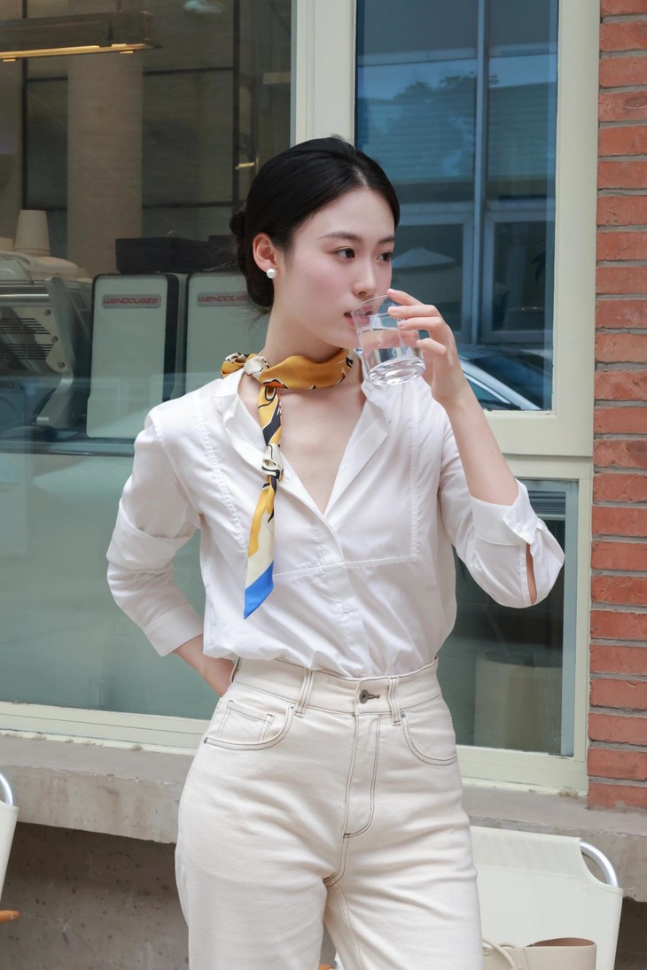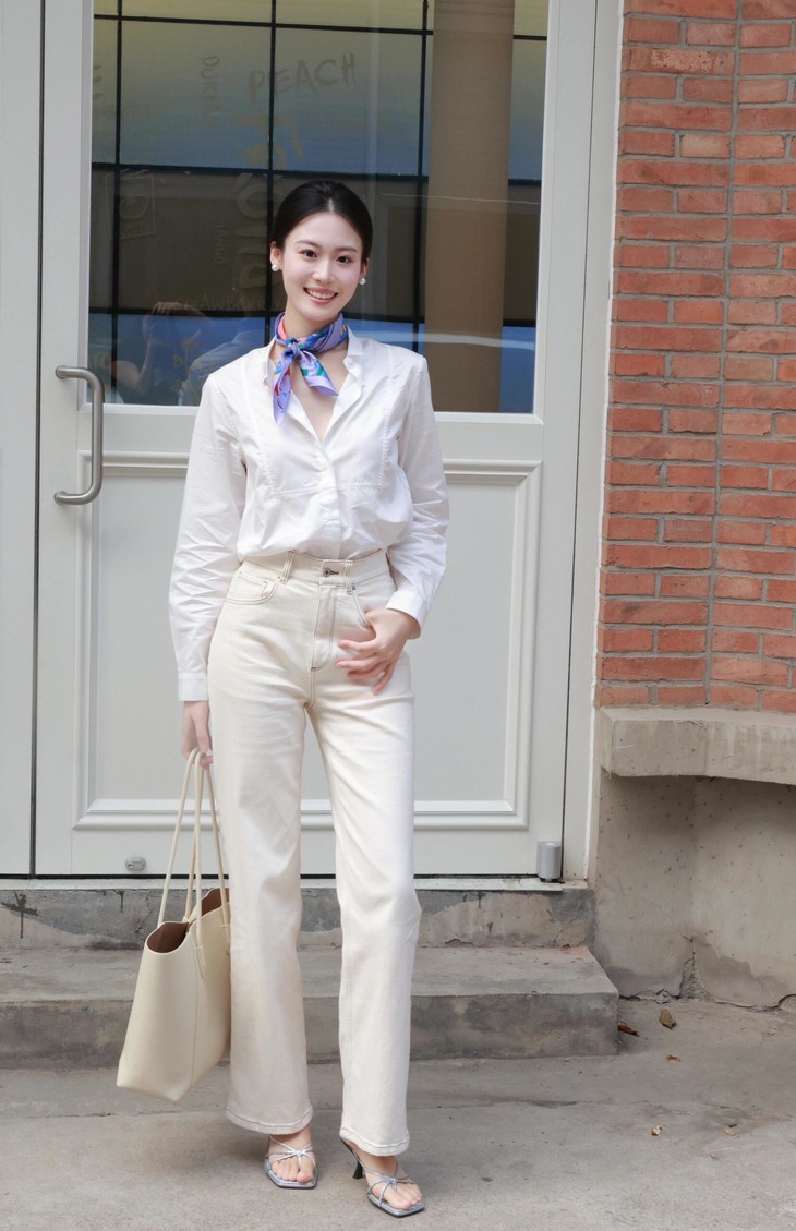 而颈间的万事利丝巾又不会让这一身纯白过于寡淡~
