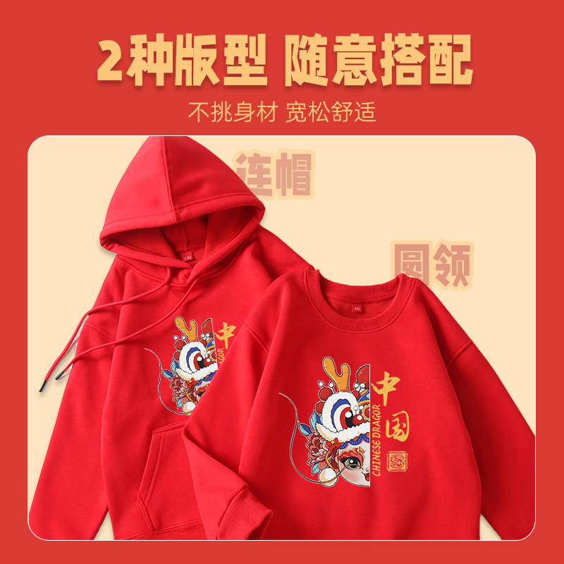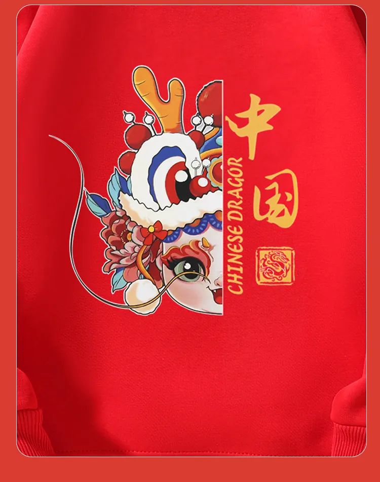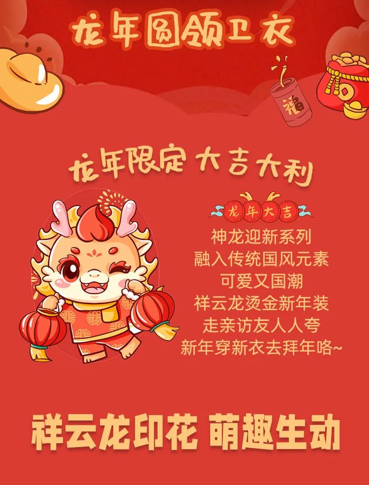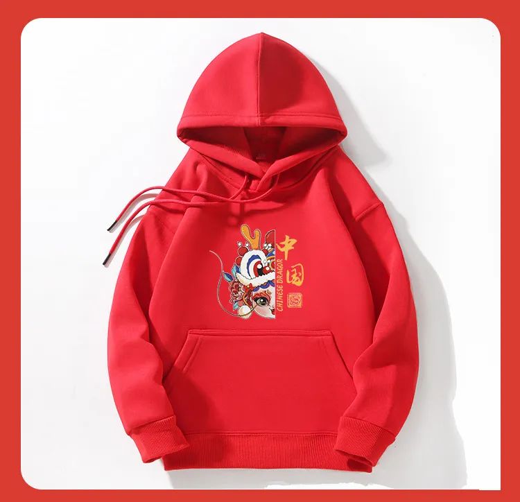 今天给大家带来的龙年特别定制款加绒卫衣,既有浓浓的年味儿,又有简单大方的设计,款式新颖不撞衫,并且面料优质,柔软亲肤实用性高,不止穿一年哦~