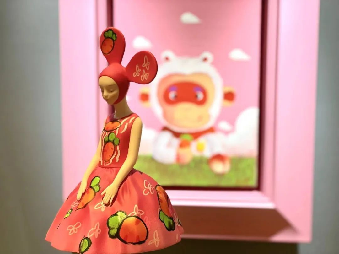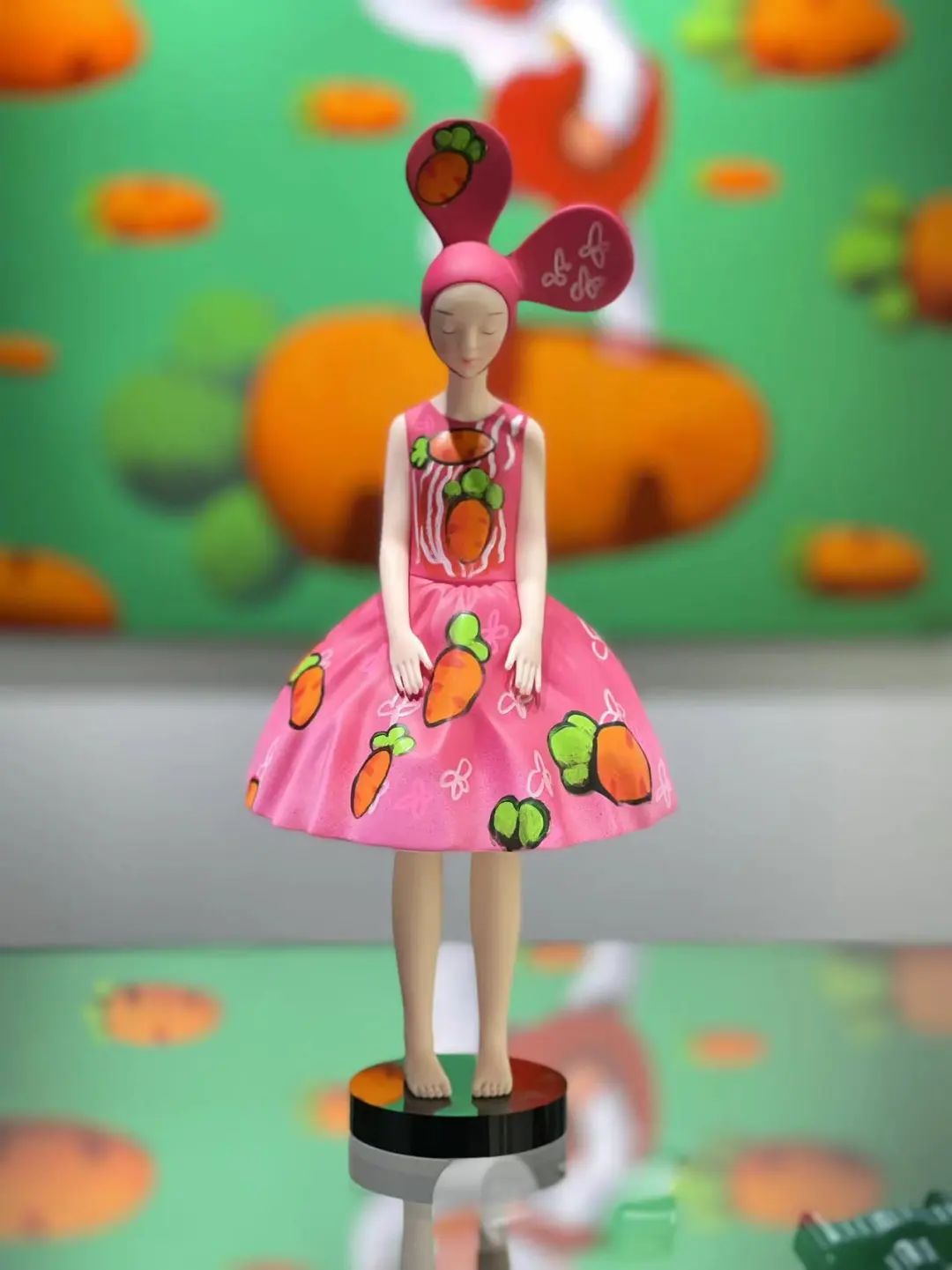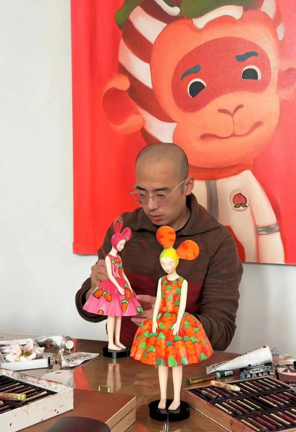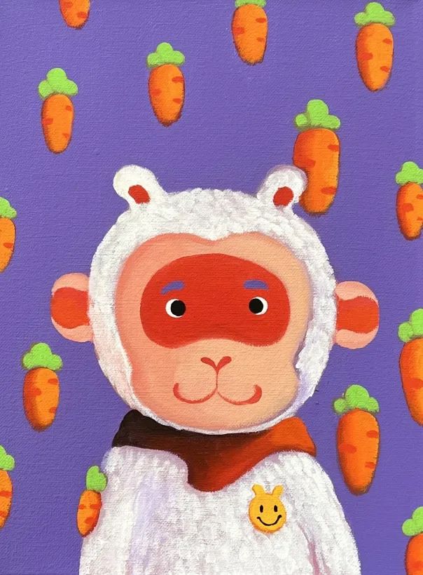 这是艺术家陈建周为此次个展「兔」飞猛进创作的然女孩。萝卜是艺术家心中孙悟空幻化的产物,他也希望这个萝卜能保护着然女孩,也是保护着每个女孩心中的那份纯真与童心。