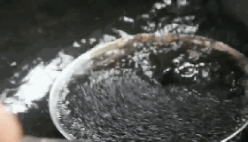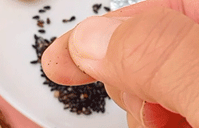 黑芝麻用泉水进行漂洗后,筛除掉杂质和不饱满的颗粒,只留下粒大饱满,色泽黑亮的颗粒。