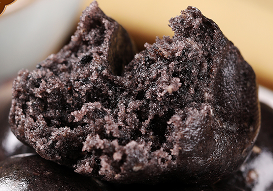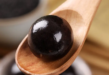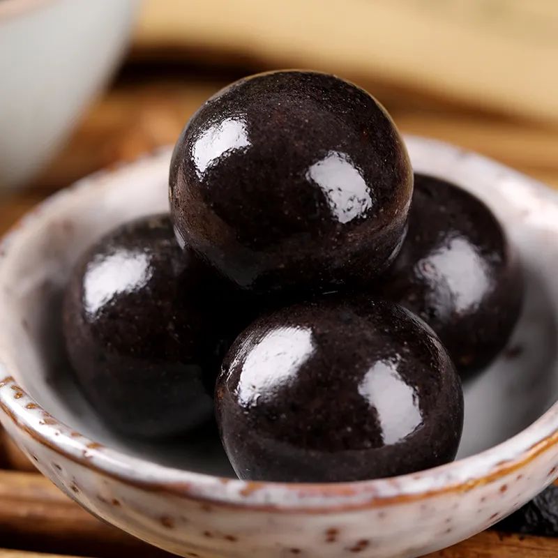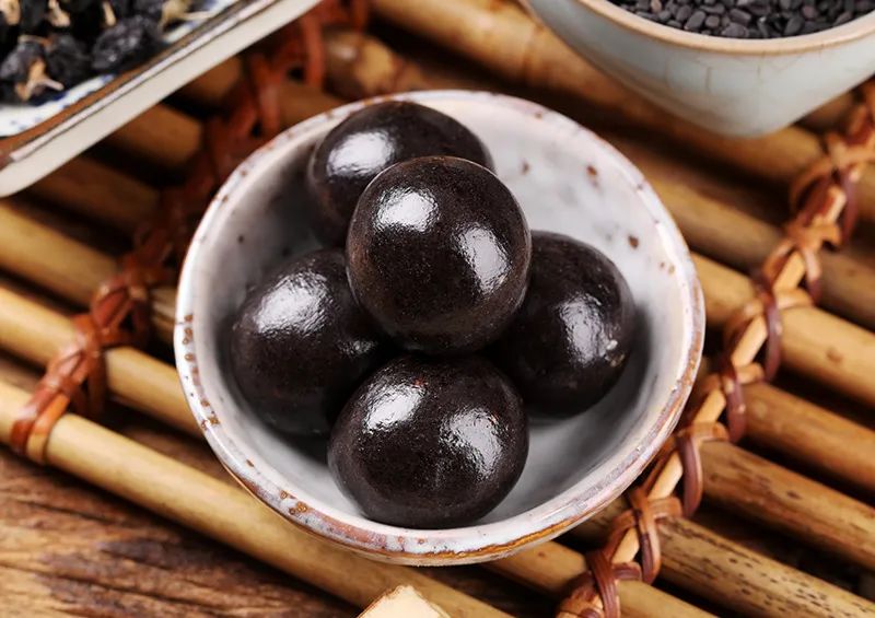 它遵循药食同源,除了黑芝麻,还添加了黑豆、黑米、黑果枸杞、桑葚……食材为原料,采用九蒸九晒工艺,蜂蜜调和成丸,不加面粉、添加剂,每次1颗,固本培元,润肤养发。
