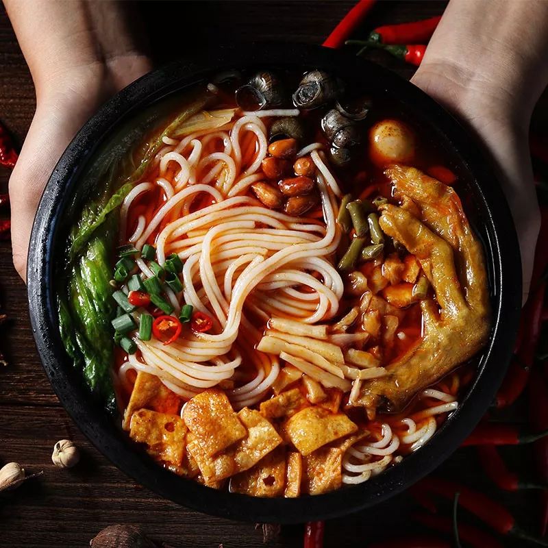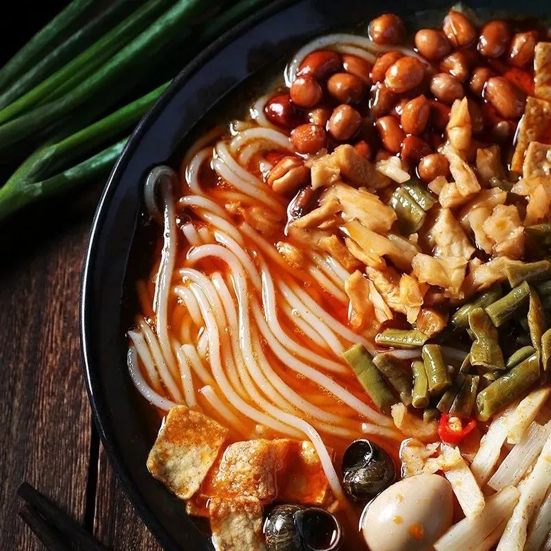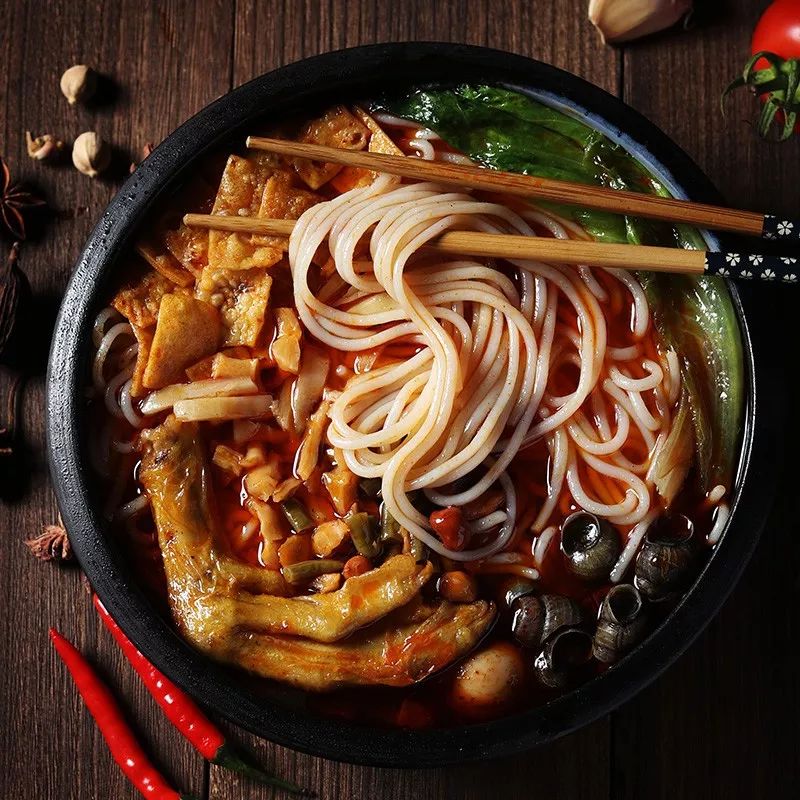 螺蛳粉的那股独特“香”味儿,还没开吃就已扑鼻而来,晶透的粉条裹粘着红晃晃的汤汁,看着就诱人!