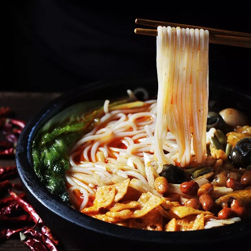 螺蛳粉里的干米粉的主要原料是大米和淀粉,还加了一些小米,质地更加柔韧富有弹性,比一般鲜米粉更加弹滑,也更加耐煮。
