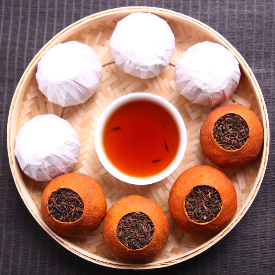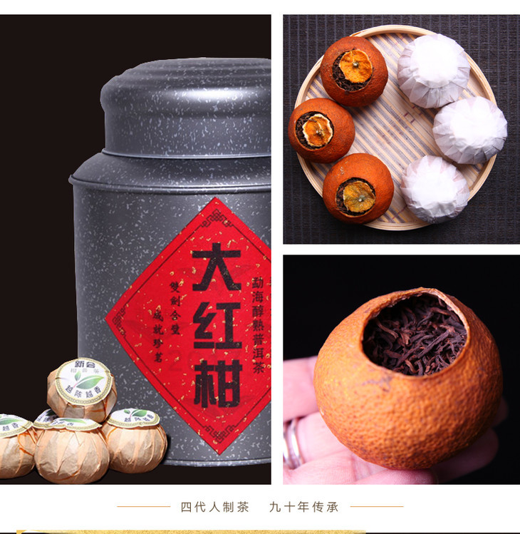仓储良好的柑普茶,柑果的甜香中还带有醇厚的陈香,香浓馥郁。茶引柑香,柑增茶味。